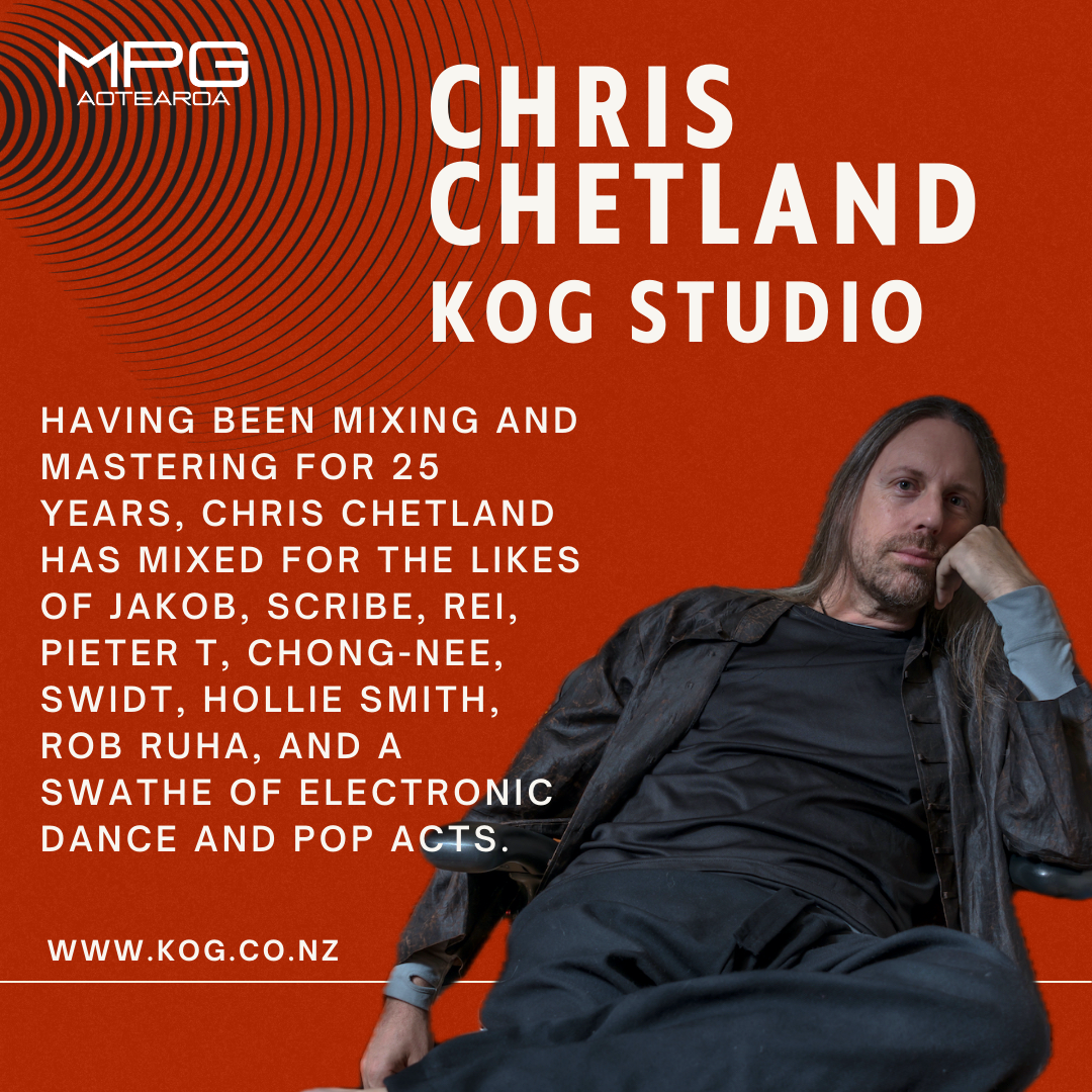 Chris Chetland of Kog has been mixing and mastering for over 25 years, and in that time been a finalist for Best Engineer at the NZ Music Awards/AMAs twice. He’s mixed for the likes of Scribe (the Crusader Album 5x Platinum), Rei, Pieter T, Chong-Nee, SWIDT, Hollie Smith, Jakob, Rob Ruha and a swathe of Electronic Dance and Pop acts. In 2021 he was a co-finalist with Maisey Rika and Rei for the Silver Scrolls for Hiwa-i-te-rangi.