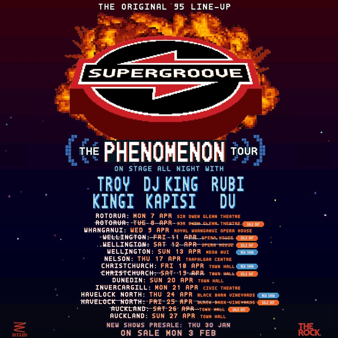 Following extraordinary demand and multiple sold-out shows, New Zealand’s legendary Supergroove is thrilled to announce additional dates for their highly anticipated Phenomenon Tour.
